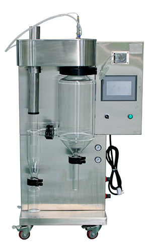 小型 實驗型 微型噴霧干燥機(噴霧干燥儀/噴霧干燥機)及其主要適用于高校、研究所和食品醫藥化工企業實驗室生產微量顆粒粉末,對所有溶液如乳濁液、懸浮液具有廣譜適用性, 適用于對熱敏感性物的干燥如生物制品、生物農藥、酶制劑等,因所噴出的物料只是在噴成霧狀大小顆粒時才受到高溫,故只是瞬間受熱,能保持這些活性材料在干燥后仍維持其活性成份不受破壞。
