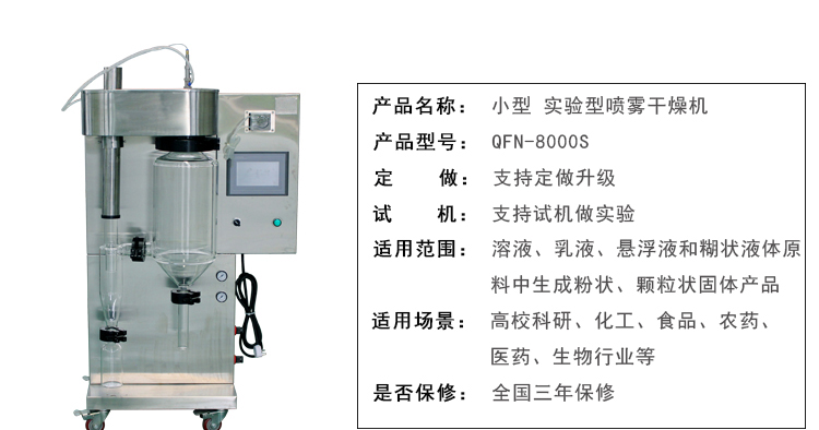 噴霧干燥器原理通過機(jī)械作用,將需干燥的物料,分散成很細(xì)的像霧一樣的微粒,(增大水分蒸發(fā)面積,加速干燥過程)與熱空氣接觸,在快速將大部分水分除去,使物料中的固體物質(zhì)干燥成粉末。