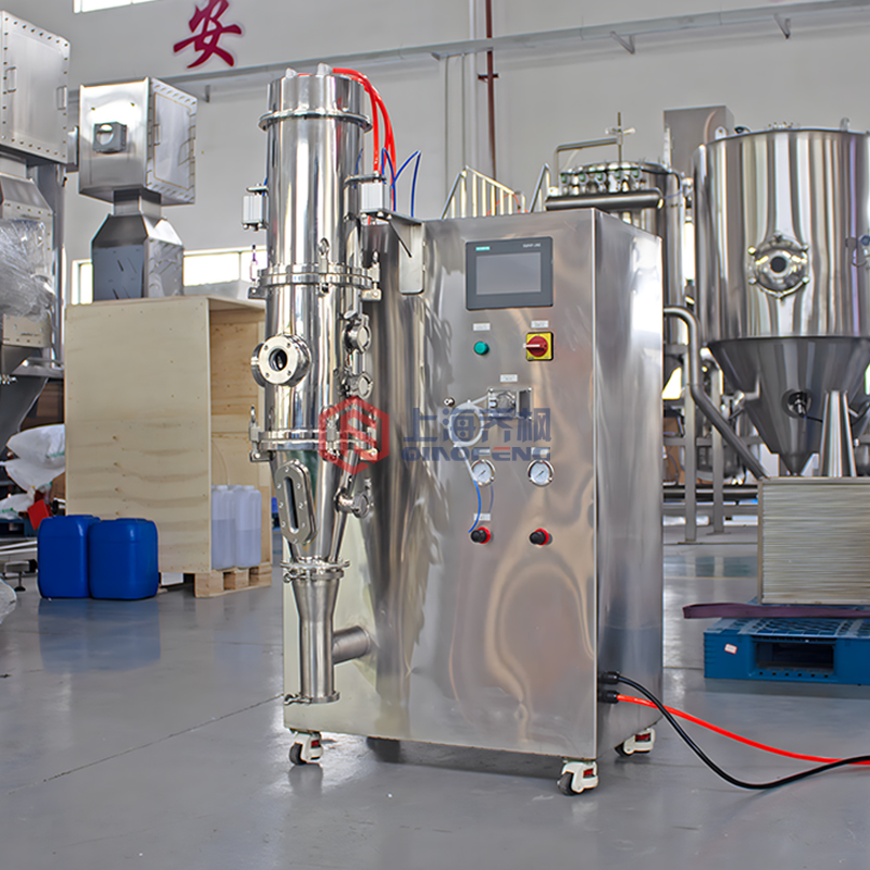 沸騰制粒機(jī) 小型實(shí)驗(yàn)用沸騰制粒包衣一體機(jī) (微型沸騰制粒機(jī))是我司研制的微型多功能制粒包衣設(shè)備,設(shè)備體積小,物料處理量小,備料方便,可用于各種顆粒和微丸的混合、干燥、制粒和包衣功能,設(shè)備還帶有噴霧干燥功能,滿足高校、科研院所和企業(yè)研發(fā)單位科研人員小樣制備和中試的需要,目前在國內(nèi)有近500多所高校研究單位采用了我司的噴霧造粒設(shè)備。
