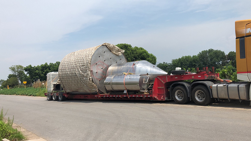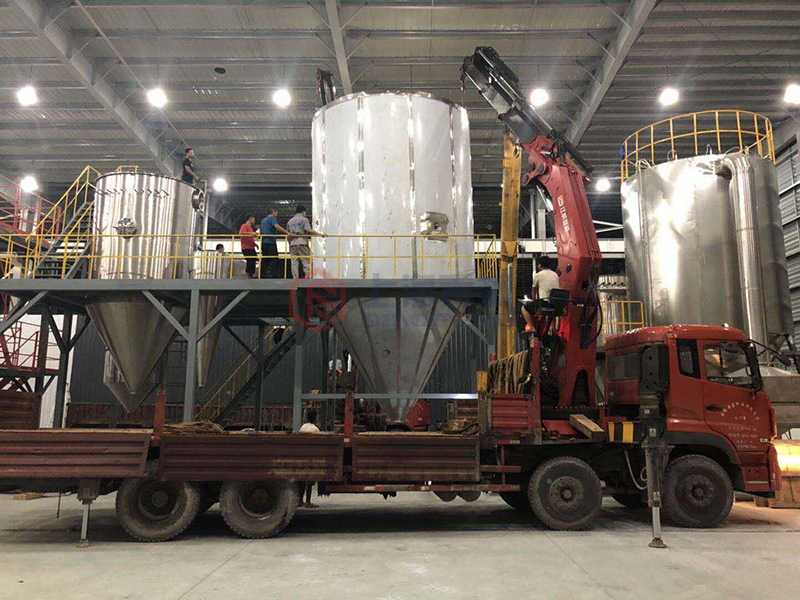 將熱風(fēng)送入到強(qiáng)制分配器中,通過(guò)霧化塔的均風(fēng)板出來(lái)。和熱風(fēng)充分接觸并迅速干燥。