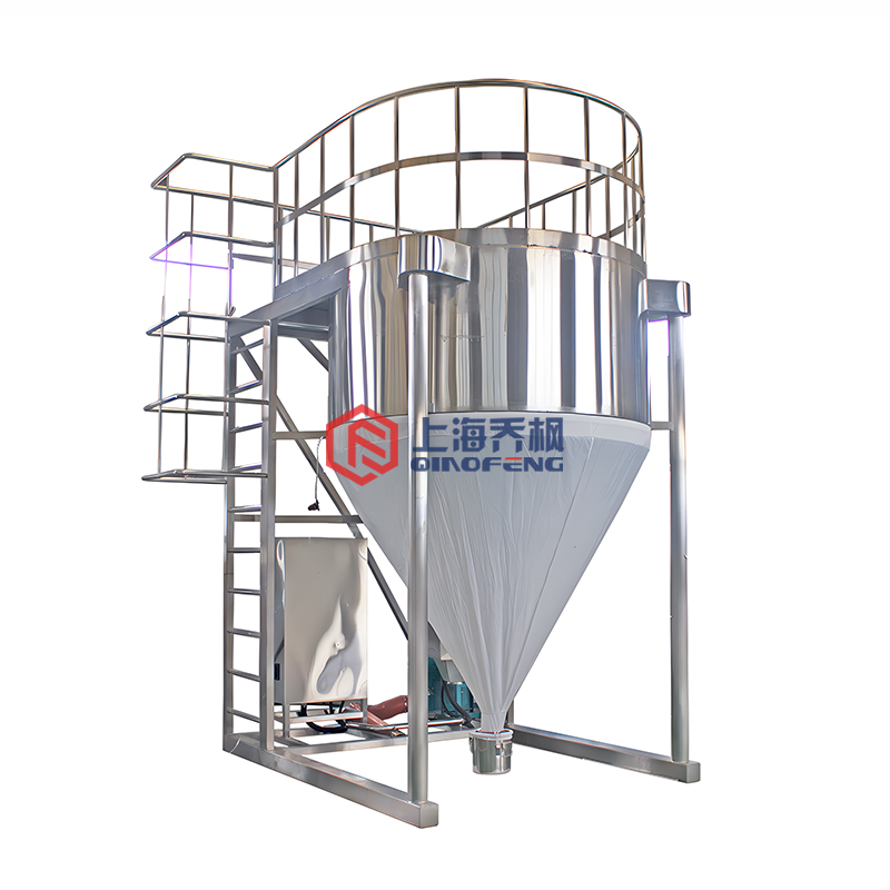 普通的噴霧干燥機的干燥室是用不銹鋼制成的,收粉另需旋風分離器等設備,而袋式噴霧干燥機的干燥室是一個拆裝方便的大布袋,因此粉體產品不分粗細皆于袋底一處回收,特別適用于精密陶瓷等產品粒徑不需分級的造粒和干燥。