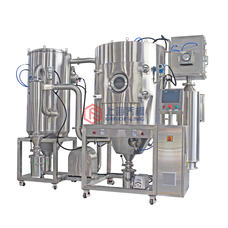 6. 生產過程簡化,智能操作觸摸屏程序控制方便,適宜實驗型,連續控制生產型請聯系我公司人員定制生產型噴霧干燥機。